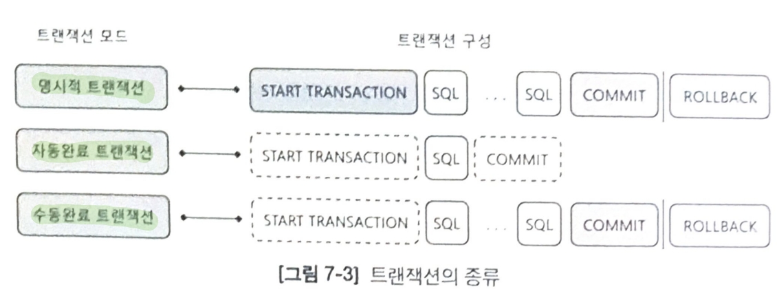 - 트랜잭션은 설정 모드에 따라 3가지 트랜잭션으로 구분 가능