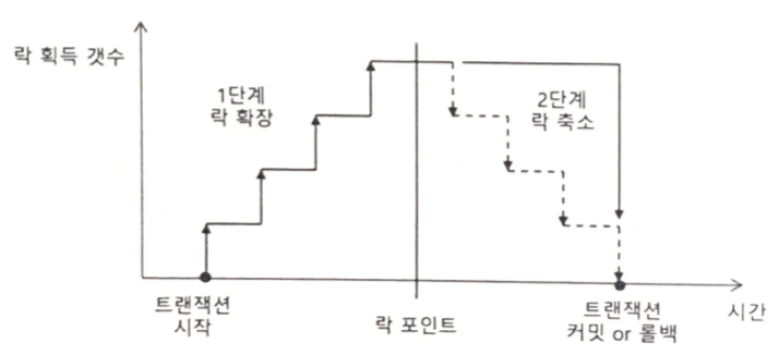 - 필요로 하는 모든 락을 획득하는 시점인 락 포인트가 되면 보유하고 있던 락을 점차적으로 해제