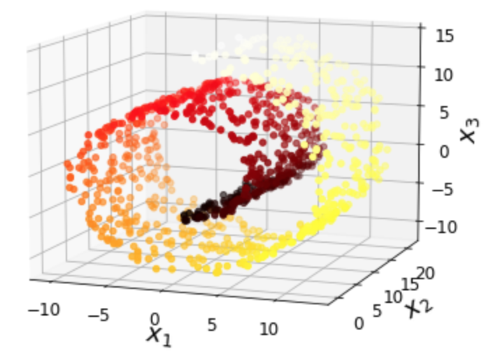 그렇다면 이 문제를 어떻게 해결할까? 방법은 여러가지가 존재하나 대표적으로 차원 축소() 알고리즘을 사용해 해결한다. 여기서 말하는 차원은 특성과 같다. 즉 특성의 수를 줄이는 것이다. 특성의 수를 줄이는 방법은 차원 축소 알고리즘 마다 다르다. 대표적으로 투영(Projection)개념이 사용된다.