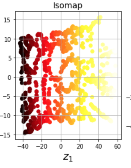 각 샘플을 가장 가까운 이웃과 연결하는 식으로 그래프를 만들고, 지오데식 거리를 유지하며 차원을 축소한다.